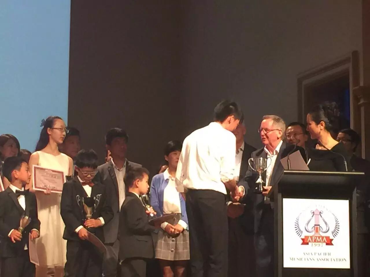 在颁奖环节,钢琴比赛组委会邀请了老师和嘉宾为16个组别的优胜者颁发了奖杯和奖状。